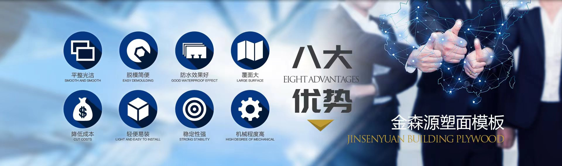 公司簡(jiǎn)介 江蘇沭陽(yáng)縣金森源木業(yè)有限公司是沭陽(yáng)縣的專(zhuān)業(yè)生產(chǎn)高檔覆膜建筑模板、全酚膠鏡面建筑模板為主的企業(yè),產(chǎn)品品牌為"龐氏"。公司創(chuàng)立于2004年,坐落于沭陽(yáng)縣桑墟鎮(zhèn)老莊經(jīng)濟(jì)開(kāi)發(fā)區(qū),位于京滬高速沭陽(yáng)北出口20公里處,距連云港港口100公里,距連云港機(jī)場(chǎng)40公里,具有得天獨(dú)厚的交通優(yōu)勢(shì)。